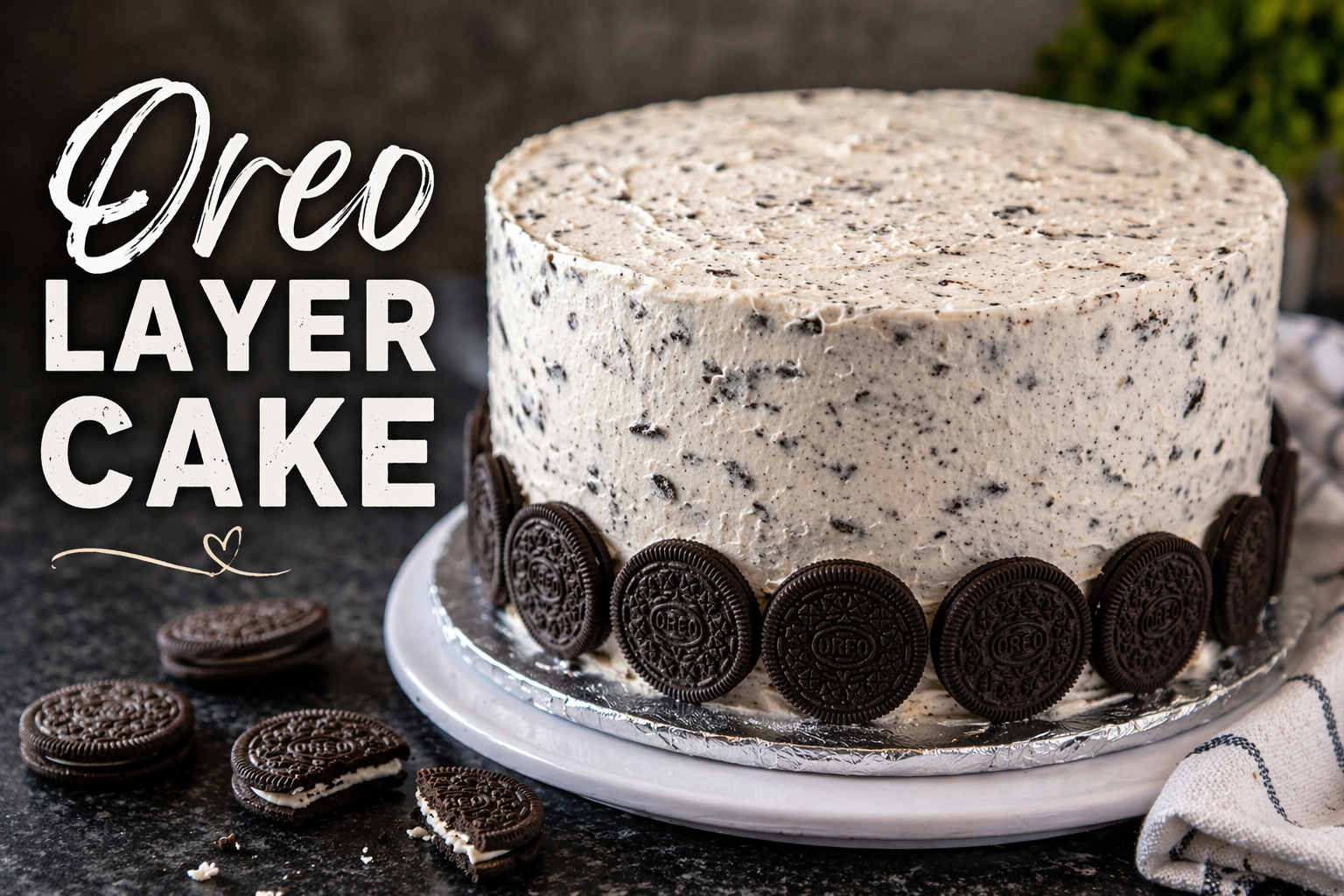 This Oreo layer cake is rich, creamy, and easy to make using cake mix! Learn how to build layers, add ganache, and decorate with Oreo buttercream.