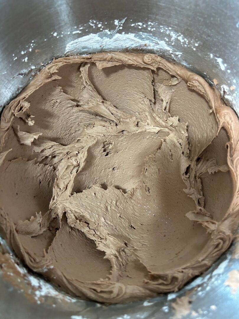Pour the melted mint chocolate mixture into the frosting and beat until smooth. The frosting will be dense, rich, and intensely chocolate-minty.