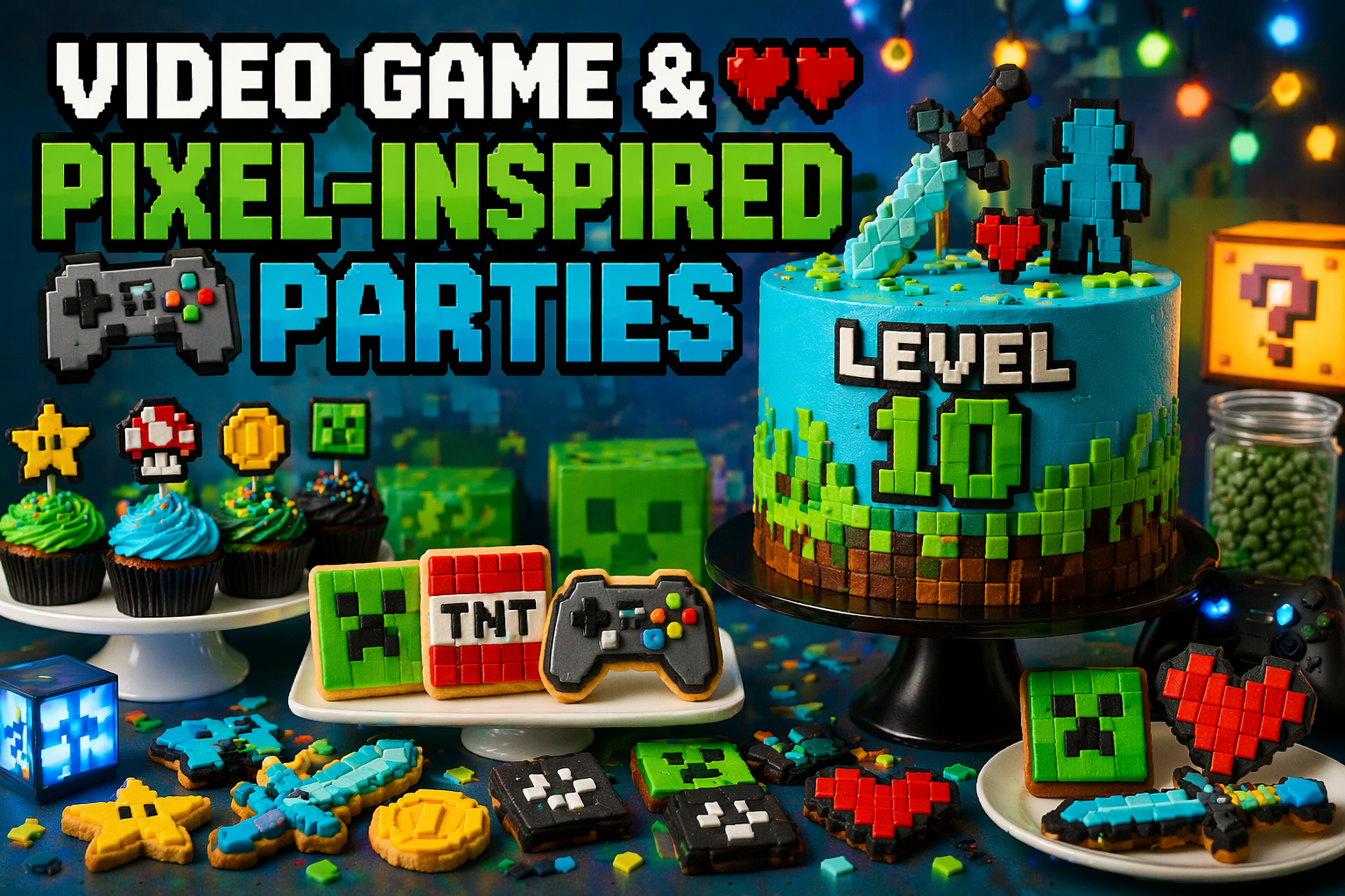 For kids who love gaming, a video game-themed birthday party is always a huge hit. From blocky Minecraft designs to bold Fortnite colors and classic pixel-style decorations, this theme is packed with personality and creativity.