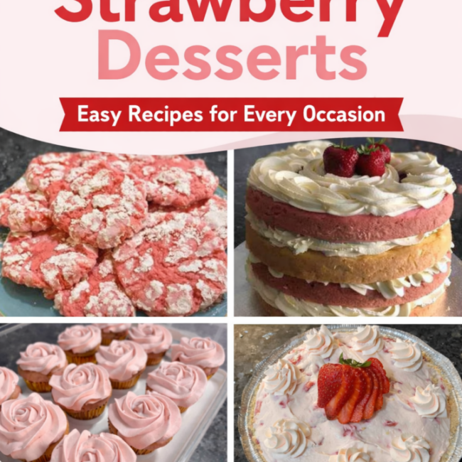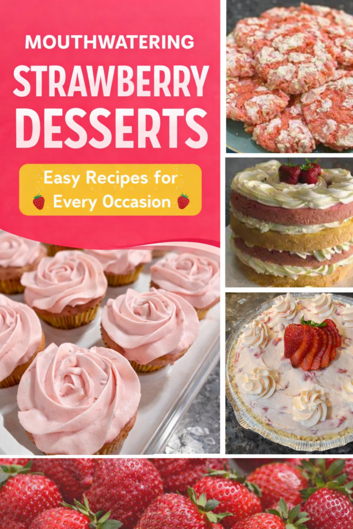 Strawberries shine in cakes and cupcakes, adding sweetness, moisture, and a beautiful pop of color. These recipes are perfect for birthdays, gatherings, or anytime you want something a little special.