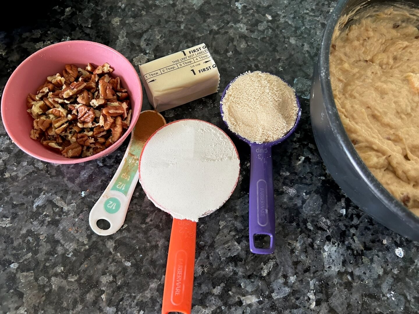 Ingredients for Hummingbird Muffins with Pecan Streusel
